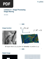 Median filtering: To achive noise reduction rather than blurring. The gray level of each pixel is replaced by the median of the gray level in the neighbourhood of that pixel Sharpening Filters Basic highpass spatial filtering: The filter should be positive ecoefficient near the center and negative in the outer periphery. The sum of the coefficient are 0. This eliminate the zero- frequency term reducing significantly the global contrast of the image -1 -1 -1