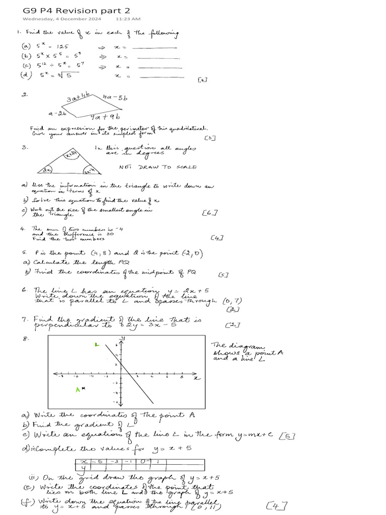 The document is titled 'G9 P4 Revision part 2' and is dated Wednesday, 4 December 2024. It appears to be a continuation or second part of a revision document. No additional content or context is provided.