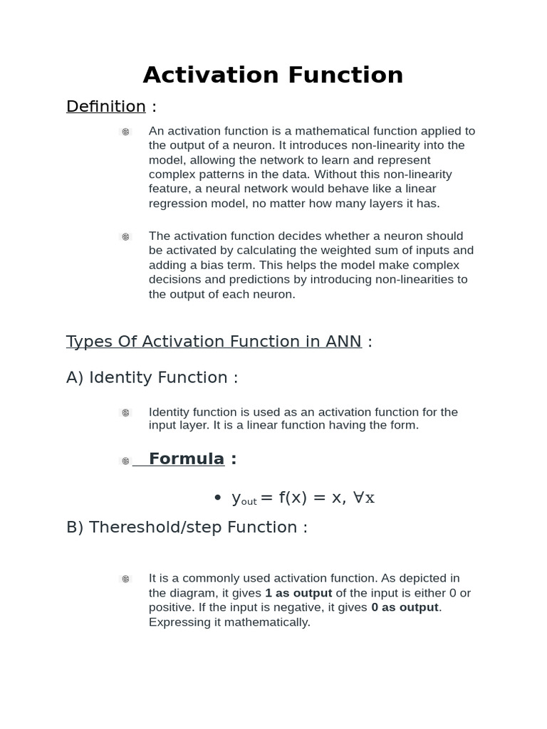 Types Of Activation Function in ANN :
