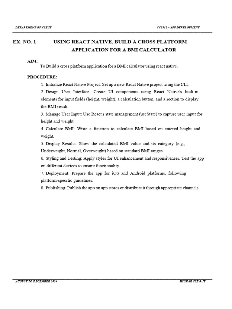 DEPARTMENT OF CSE/IT CCS332 – APP DEVELOPMENT