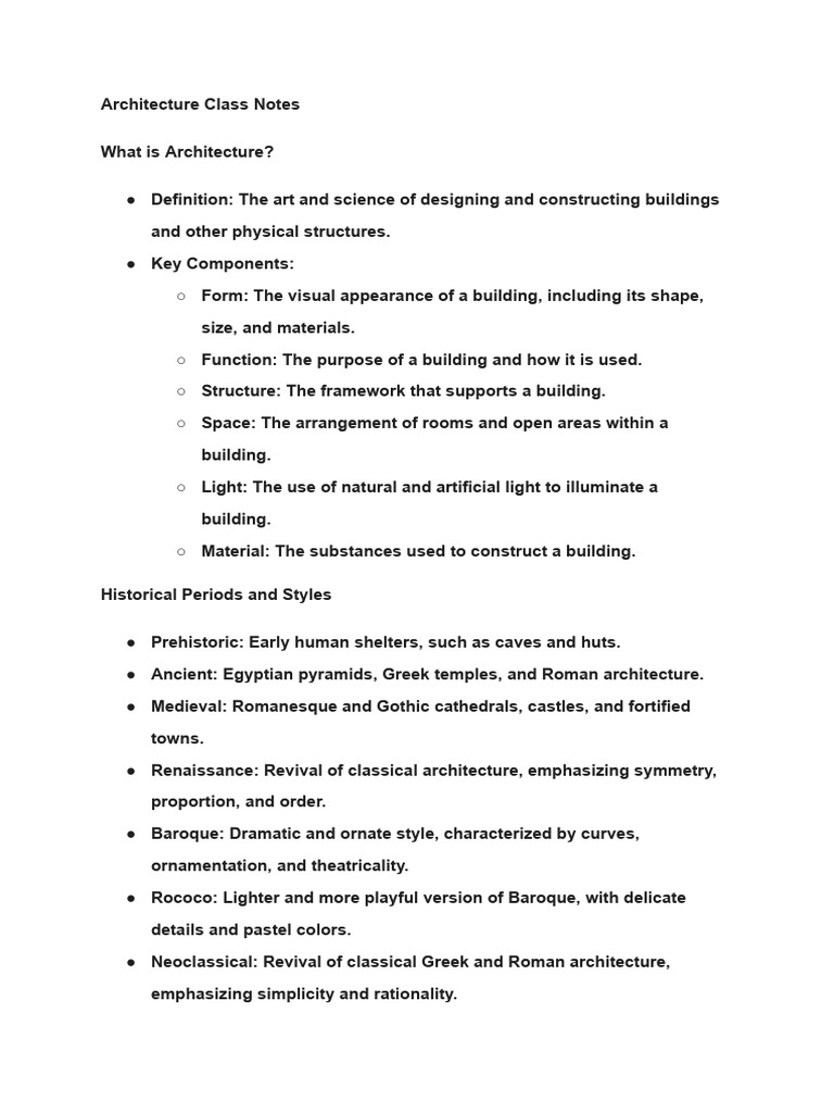 ● Ancient: Egyptian pyramids, Greek temples, and Roman architecture.