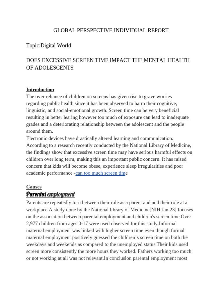 health research highlight the negative effects of excessive screen use.In this study
