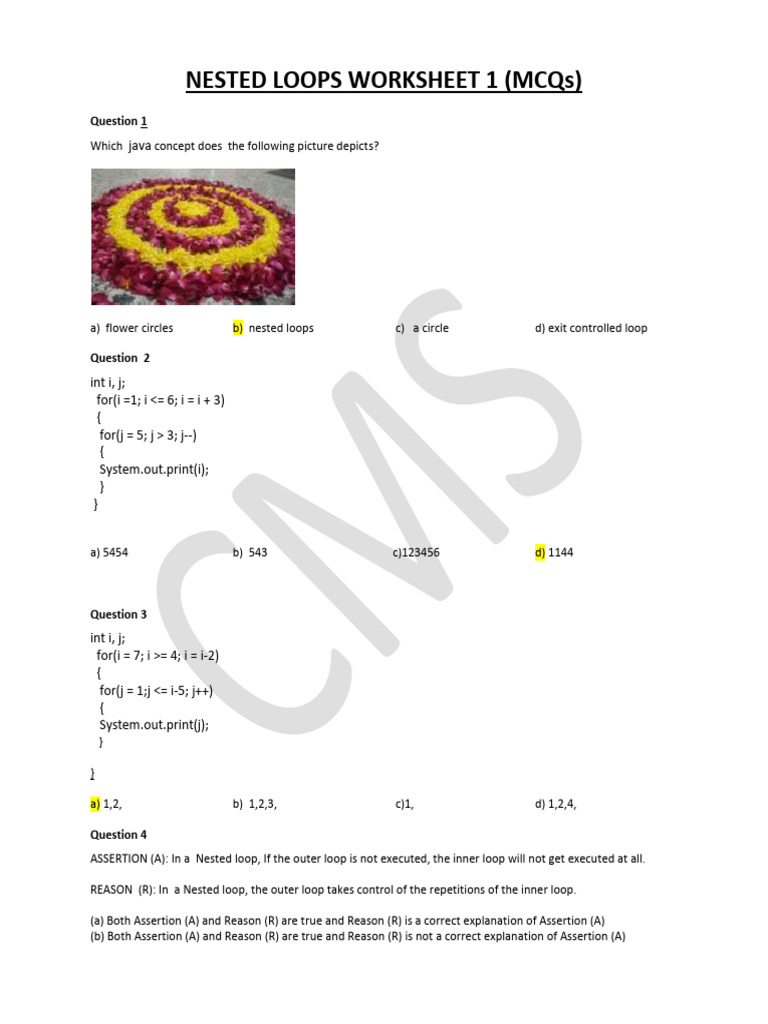 NESTED LOOPS WORKSHEET 1 (MCQs)
