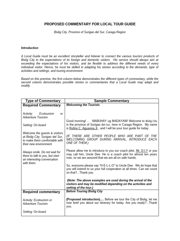 The tour guide should always (Proposed body of the commentary) … Our complete itinerary for
