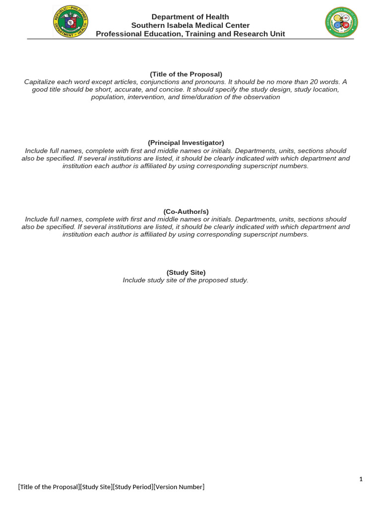 [Title of the Proposal][Study Site][Study Period][Version Number]