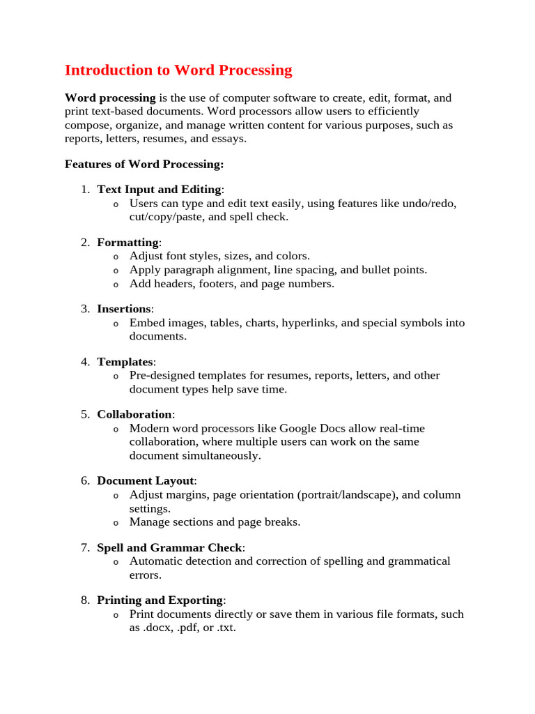 Introduction to Word Processing