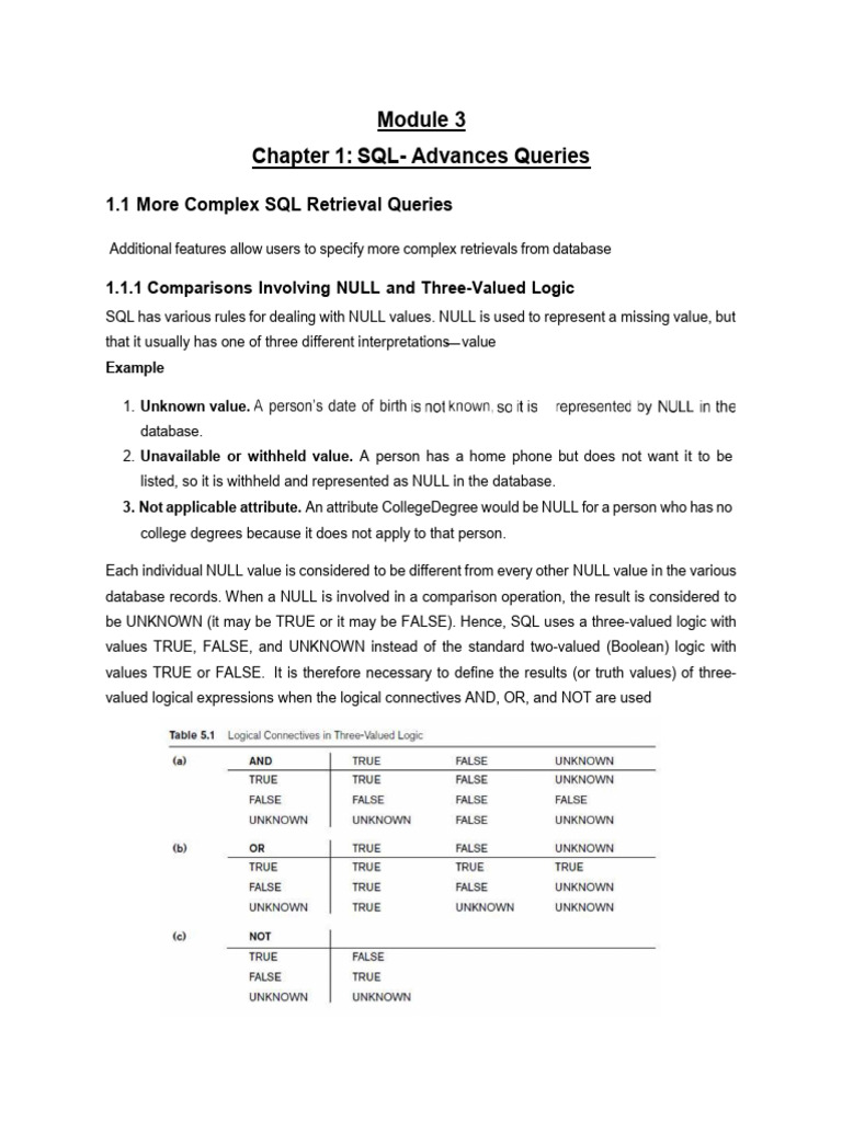 be UNKNOWN (it may be TRUE or it may be FALSE). Hence, SQL uses a three-valued logic with