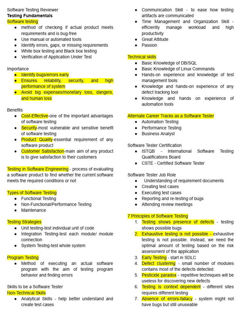 Software Testing Reviewer ● Communication Skill - to ease how testing