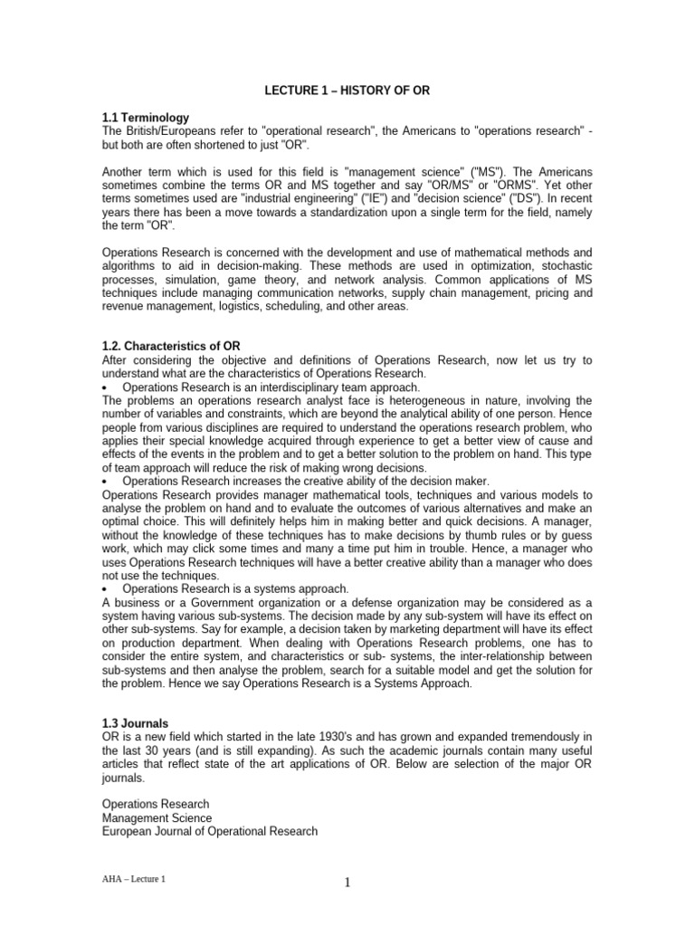 so on. OR techniques are widely used in the Health Service. For example, by using OR,