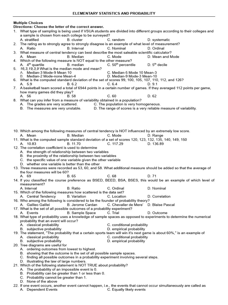1. What type of sampling is being used if VSUA students are divided into different groups according to their colleges and