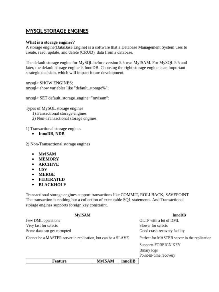 engine. It supports transactions and row-level locking. It provides ACID properties. It