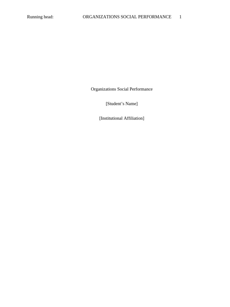 Running head: ORGANIZATIONS SOCIAL PERFORMANCE 1