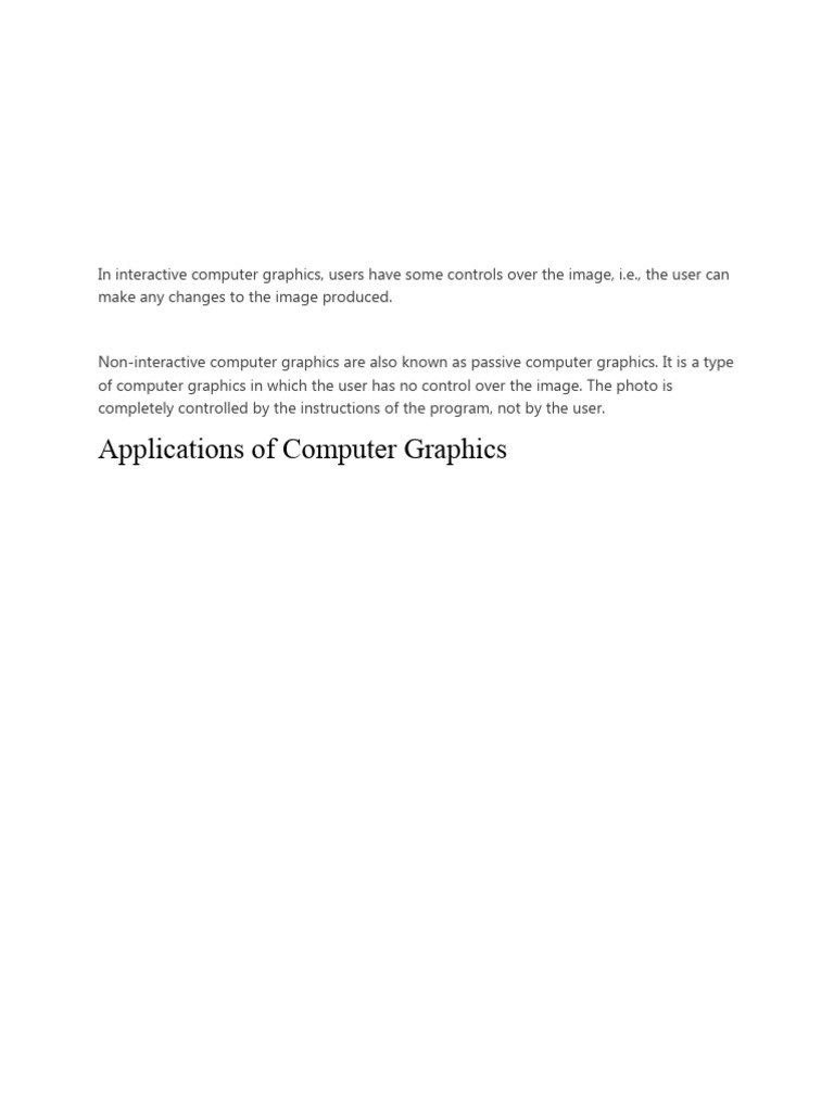 In interactive computer graphics, users have some controls over the image, i.e., the user can