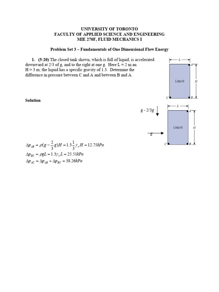 1. (5-20) The closed tank shown, which is full of liquid, is accelerated