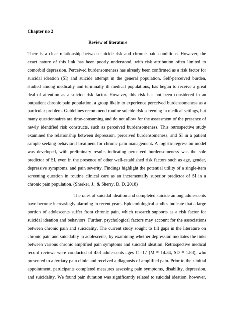 investigated a potential mediating role of depression between level of pain intensity and suicidal