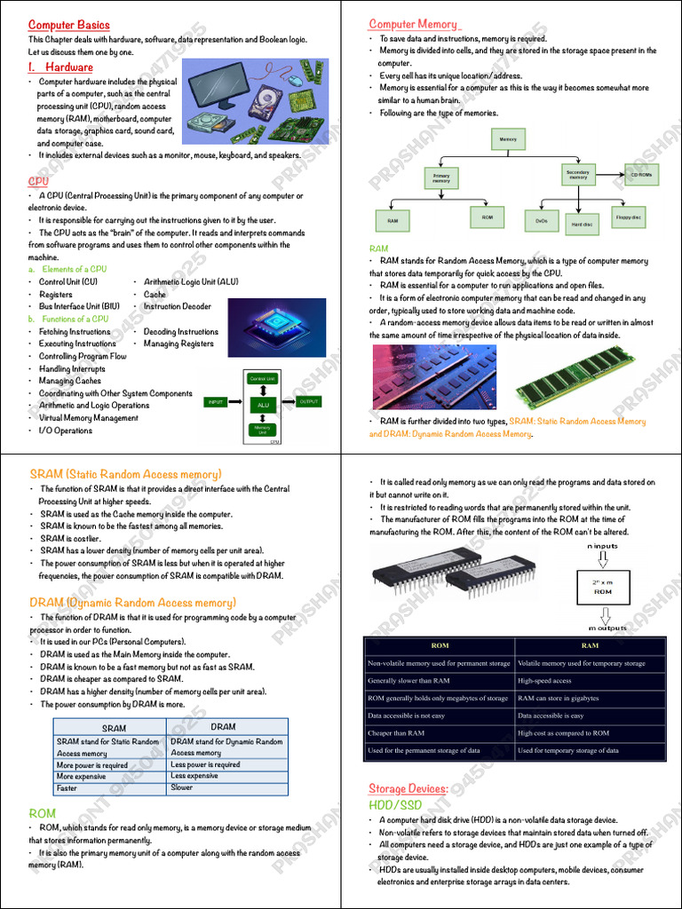 This Chapter deals with hardware, software, data representation and Boolean logic. • To save data and instructions, memory is required.