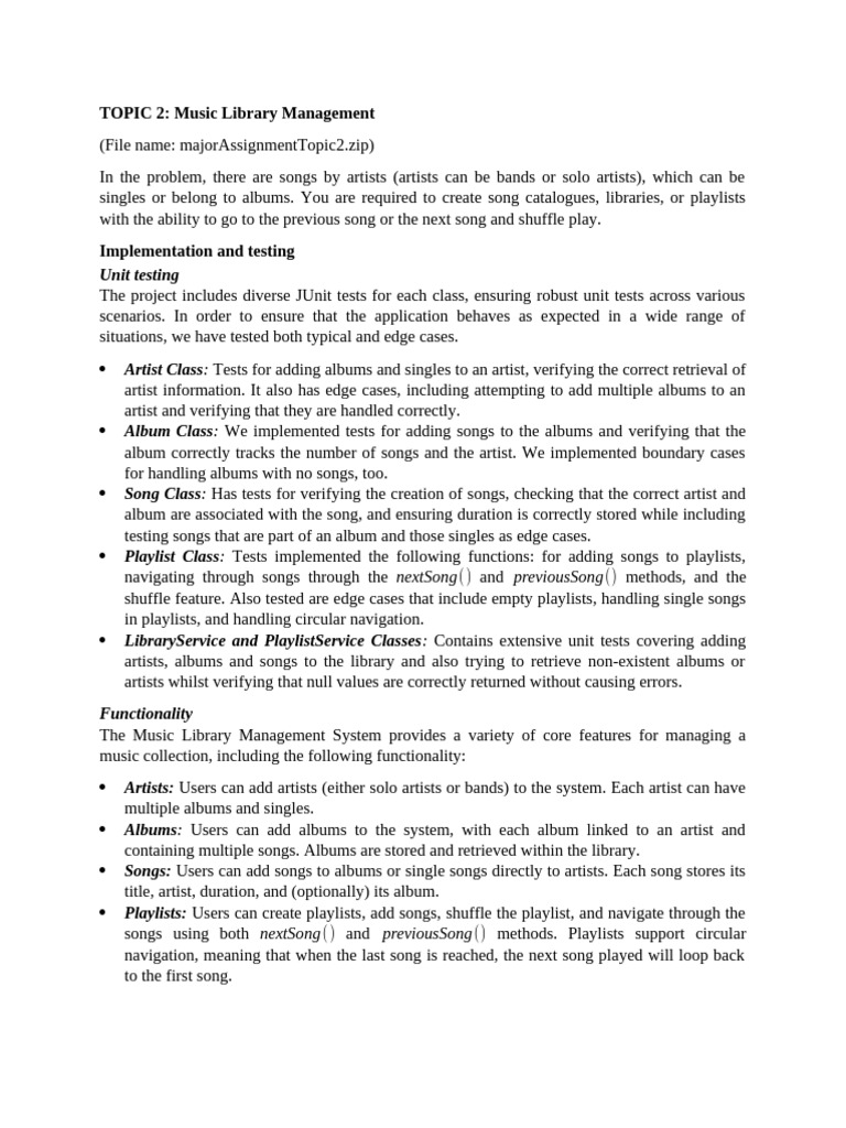 singles or belong to albums. You are required to create song catalogues, libraries, or playlists