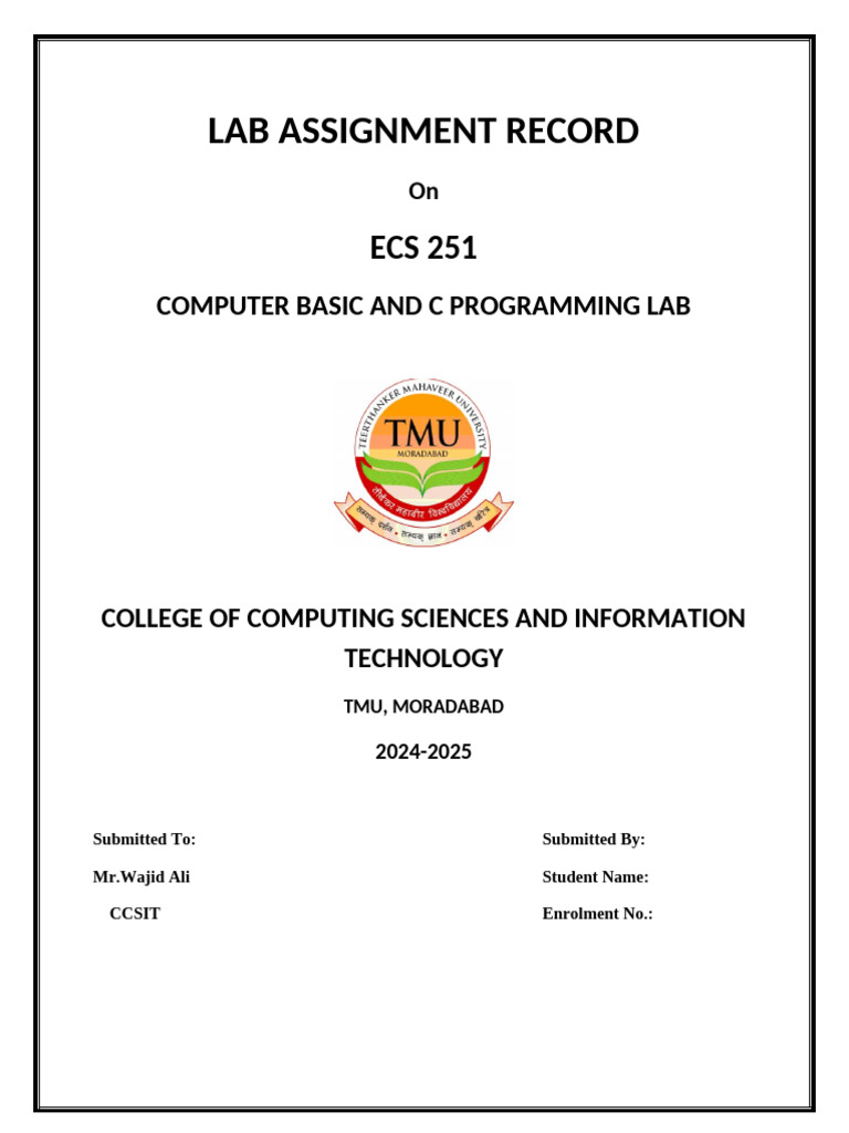 LAB ASSIGMENT NAME –COMPUTER BASIC AND C PROGRAMMING LAB
