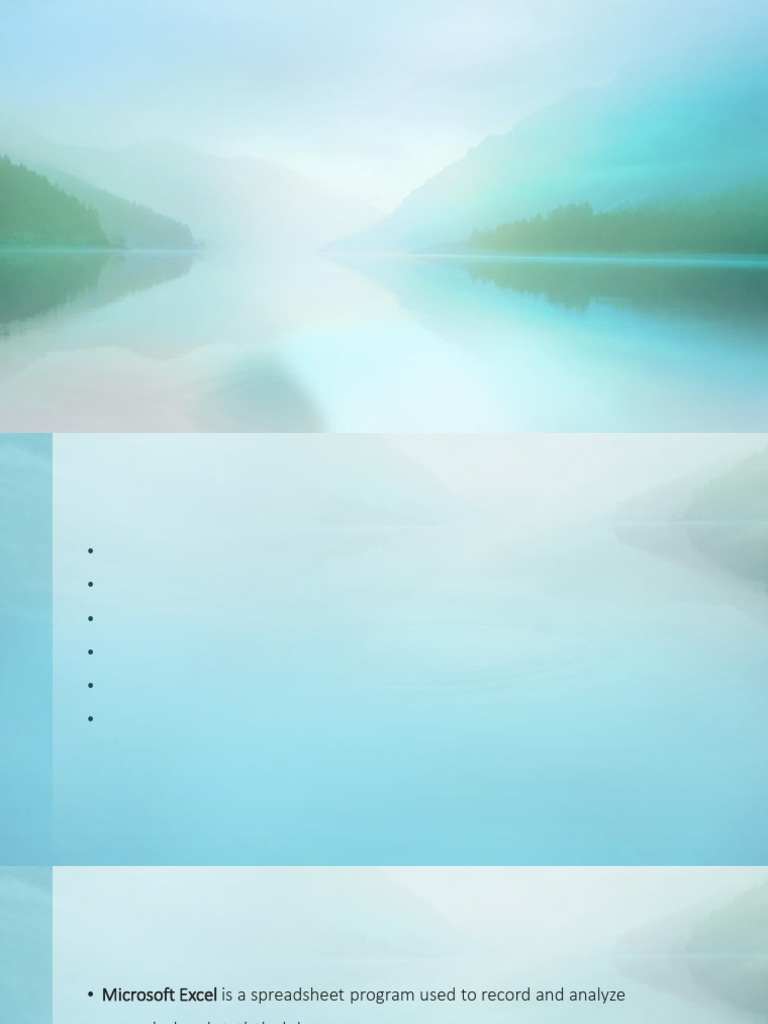 • Microsoft Excel is a spreadsheet program used to record and analyze
