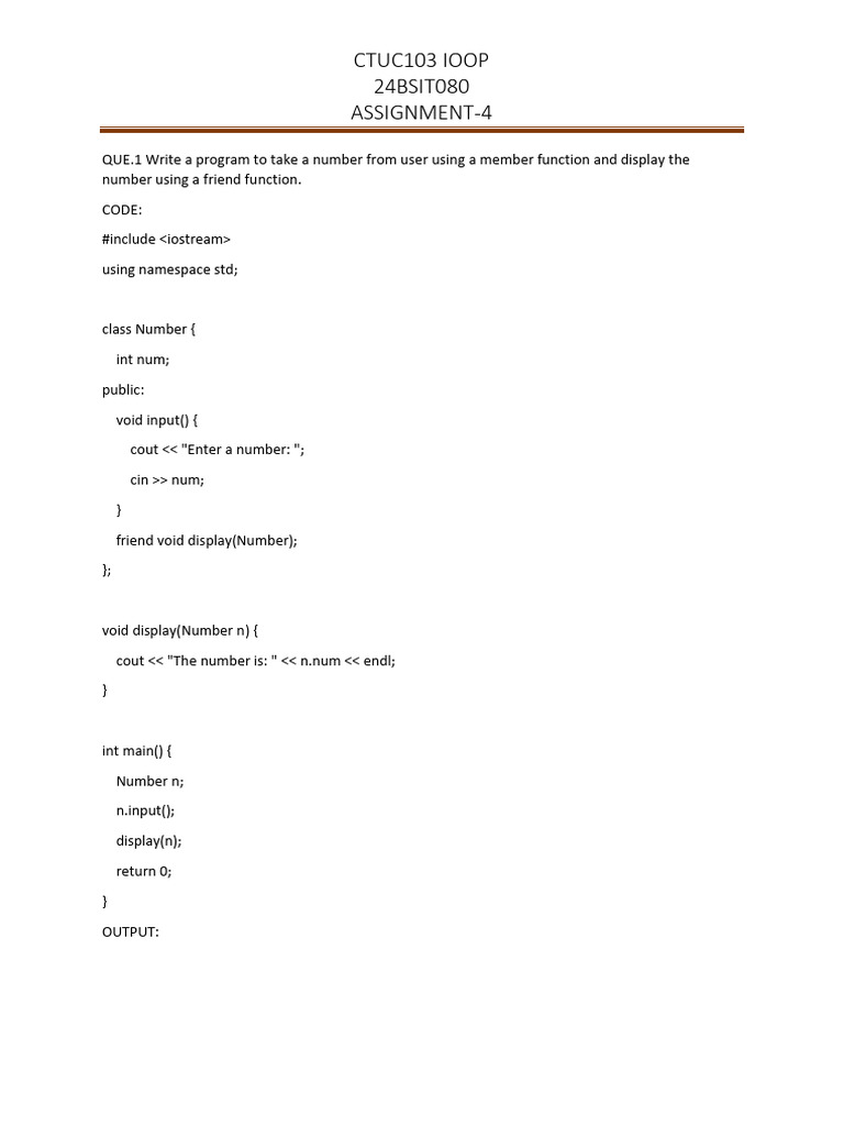 QUE.4 Write a program to calculate Simple Interest using a friend function. The input must be taken