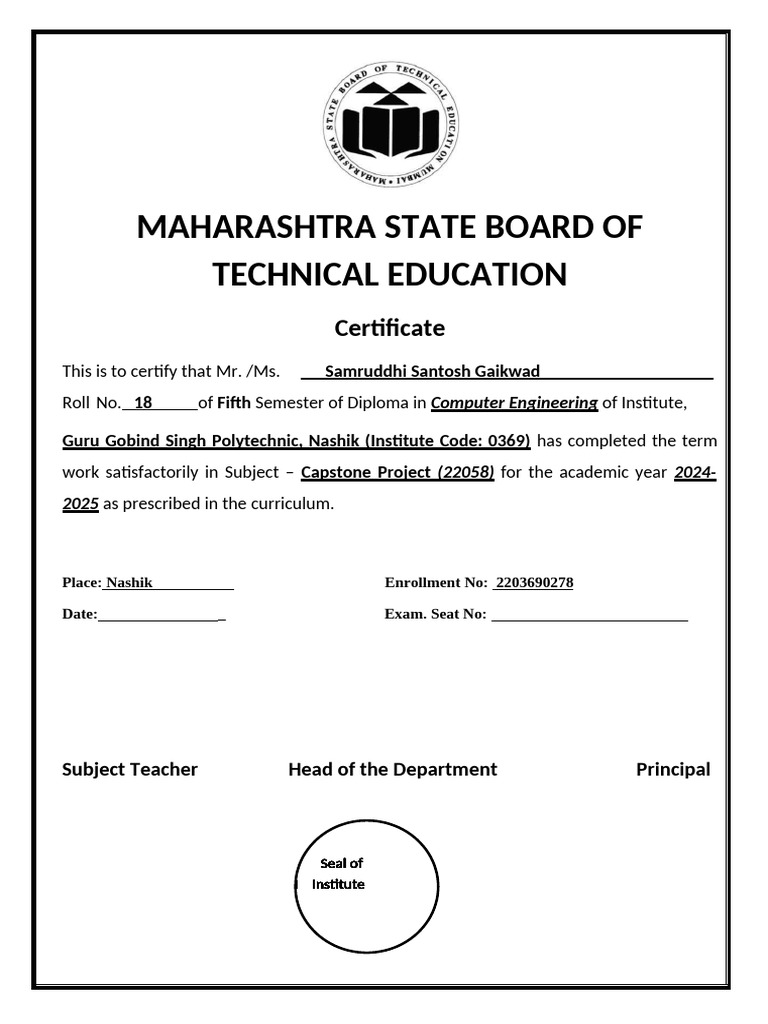 Place: Nashik Enrollment No: 2203690278