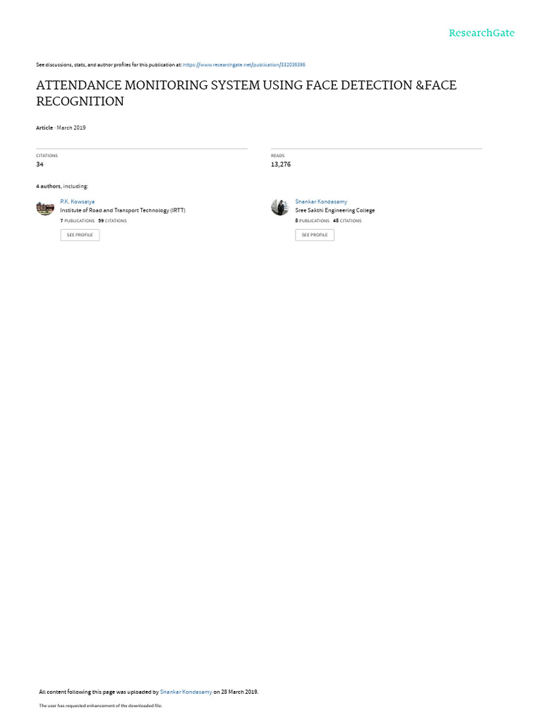 16. Gaddam, SarathChandu, N. Ramesh, and H. Dhanekula. "Face Recognition Based Attendance Management System with