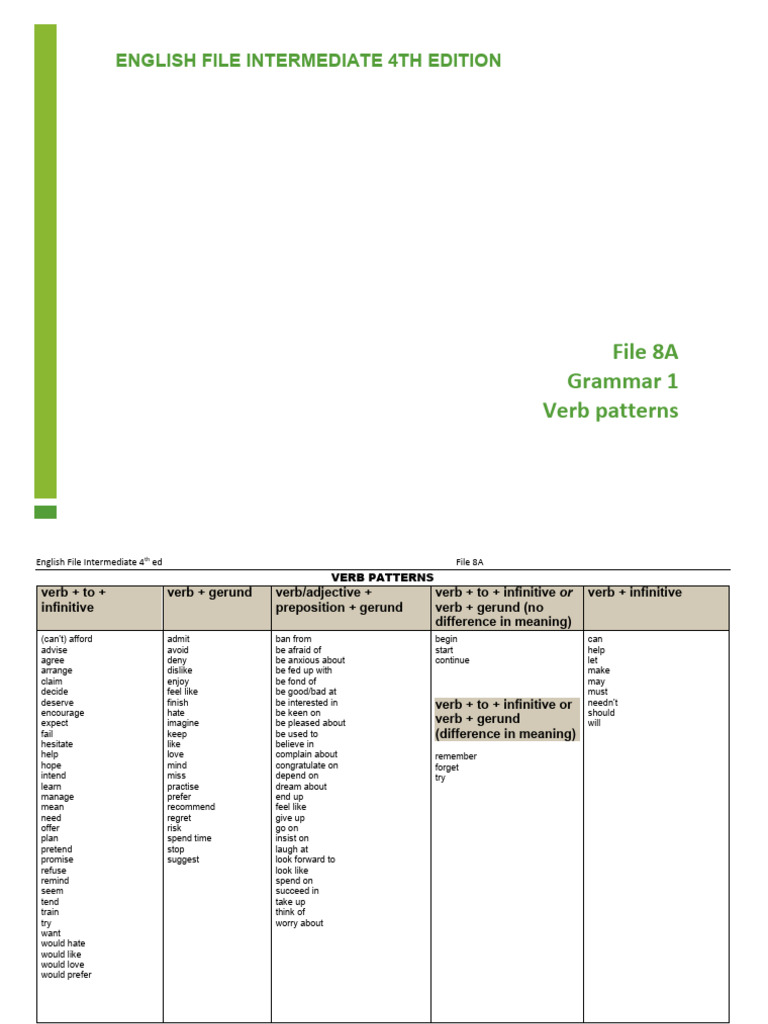 EFI4 - File 8A - Grammar - 1 - Verb Patterns
