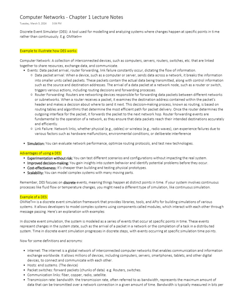 • Events: Data packet arrival, router forwarding, link failure constantly occur, dictating the flow of information.