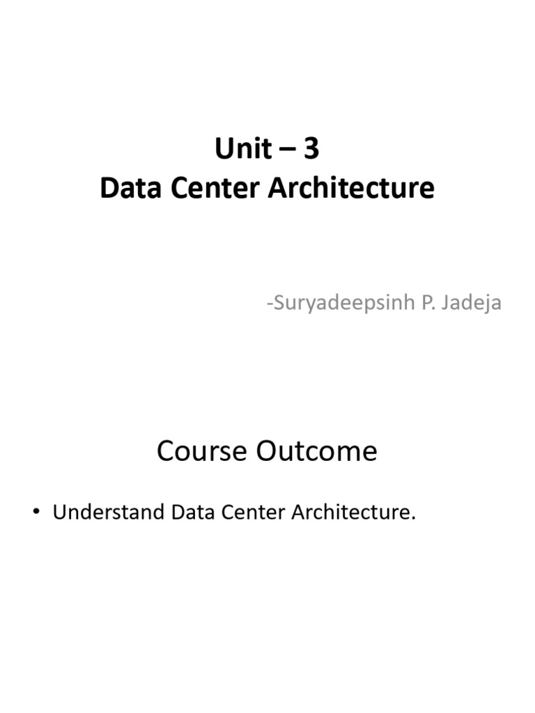 • Data Center Architecture : Data center architecture in the cloud refers to