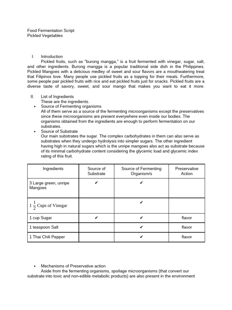 preservatives for the preparation. Since the type of fermentation employed in pickling fruits is