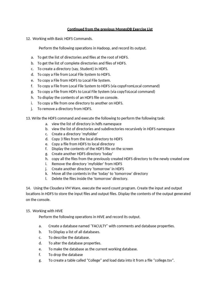 locations in HDFS to store the input files and output files. Display the contents of the output generated