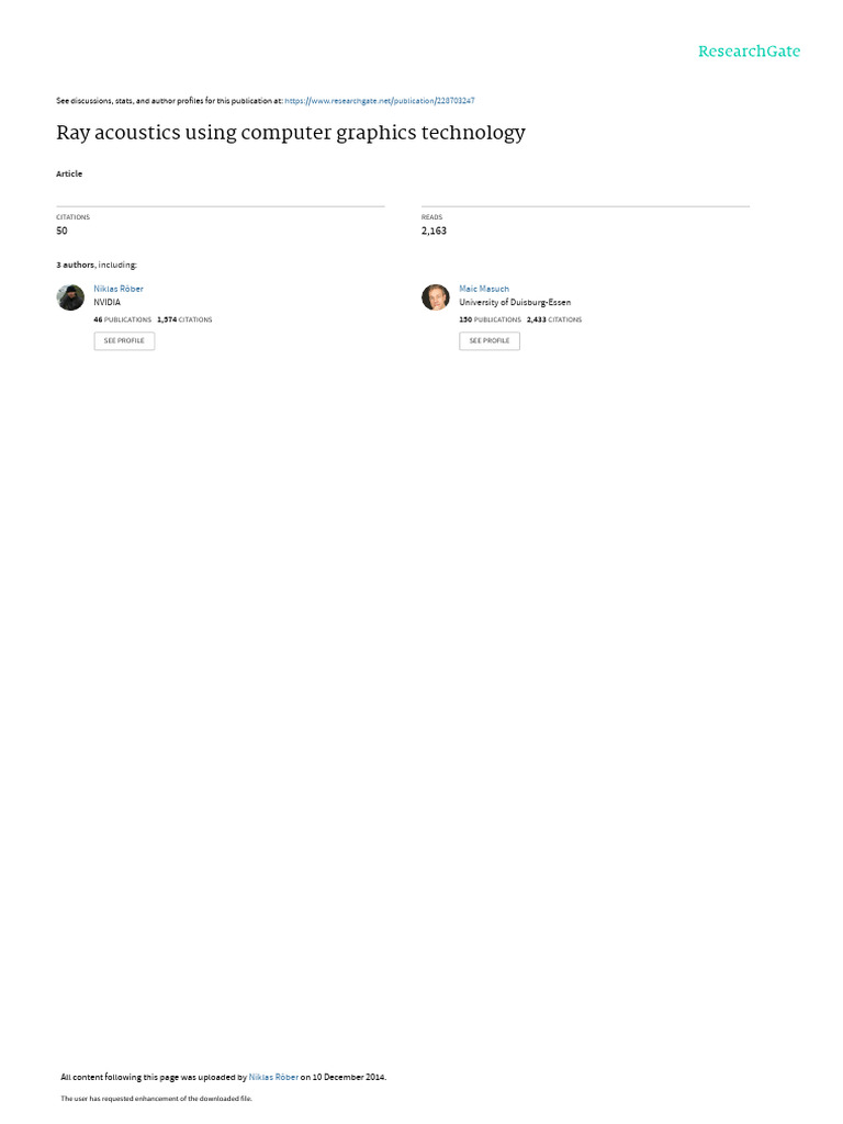 graphics over the last decade, interactive 3D sound simulations for ploitable to accommodate an acoustic energy propagation model.