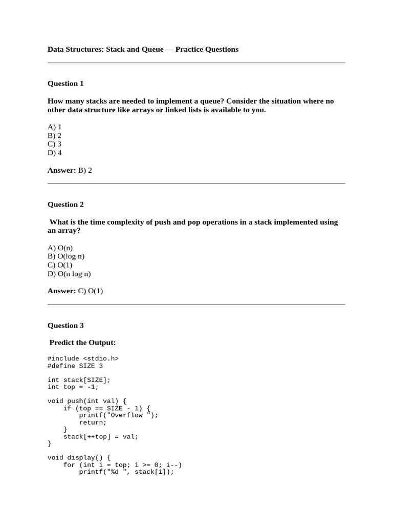 Data Structures: Stack and Queue — Practice Questions