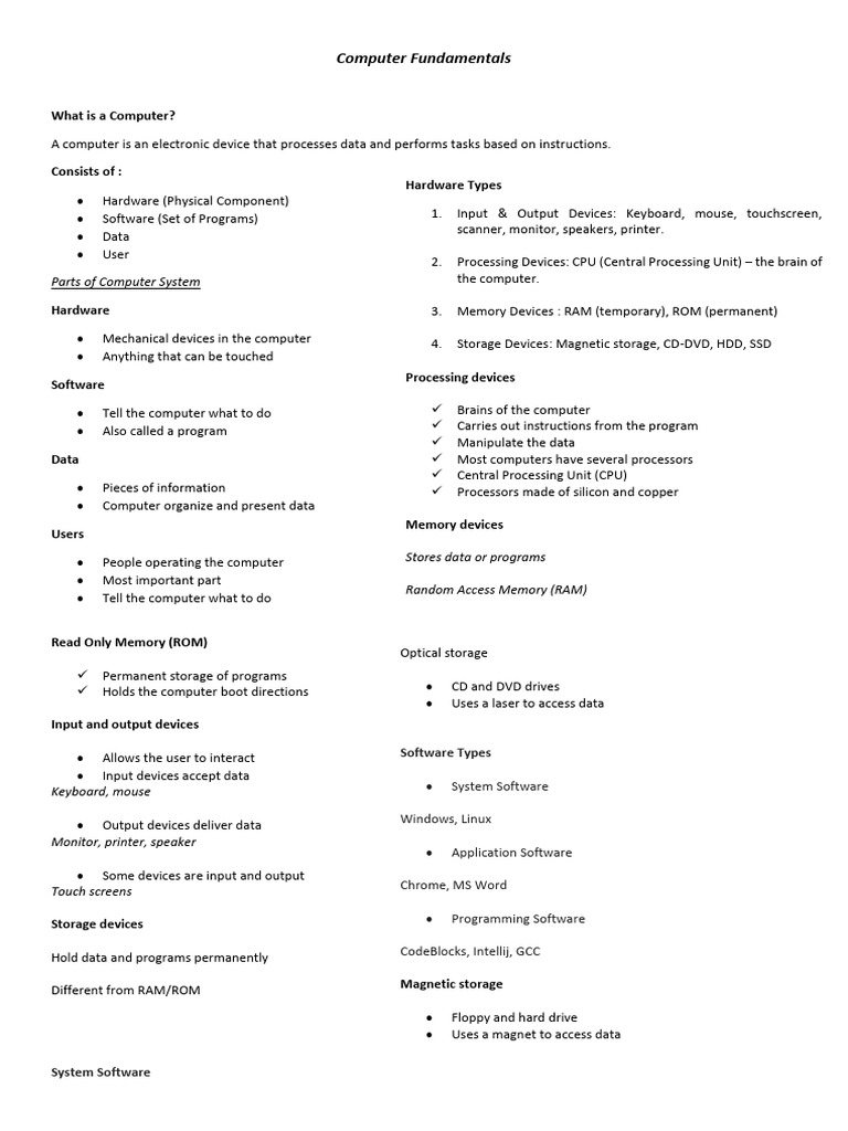 Software (Set of Programs) 1. Input & Output Devices: Keyboard, mouse, touchscreen,