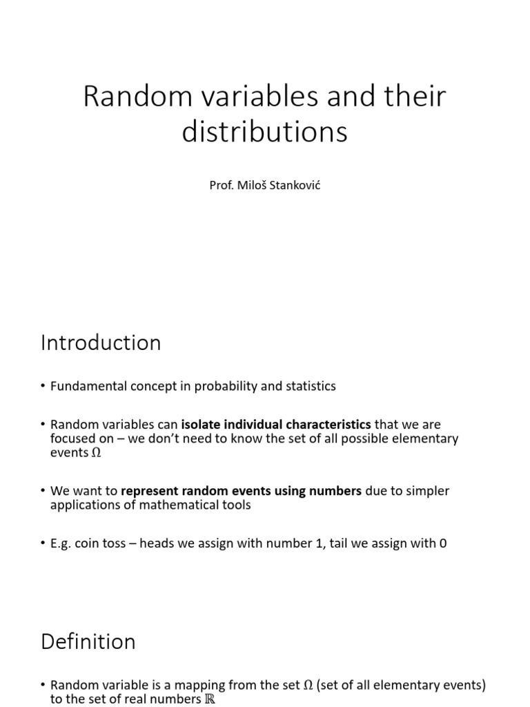 • Random variable is a mapping from the set Ω (set of all elementary events)