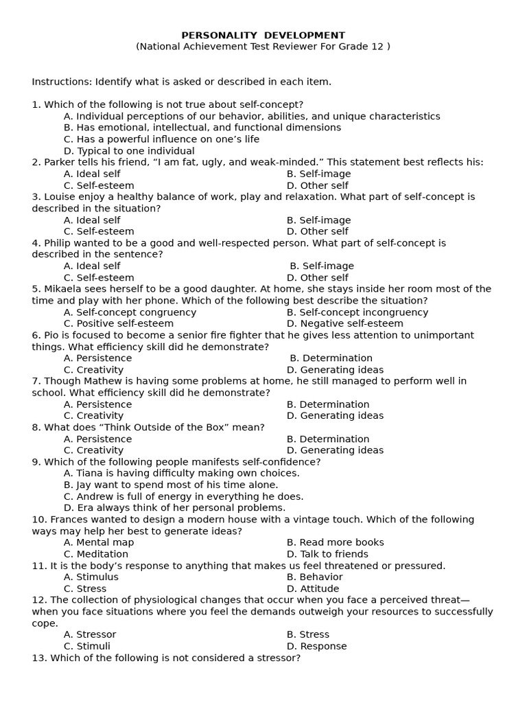 4. Philip wanted to be a good and well-respected person. What part of self-concept is