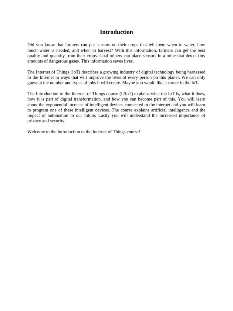 The Introduction to the Internet of Things course (I2IoT) explains what the IoT is, what it does,
