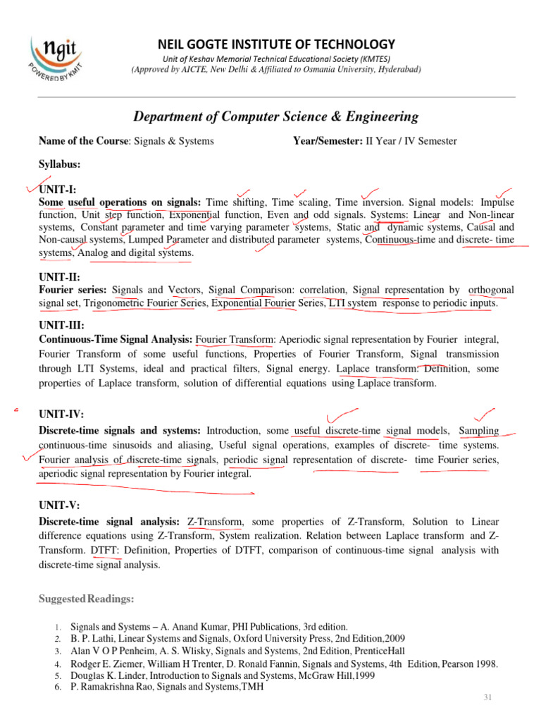 Name of the Course: Signals & Systems