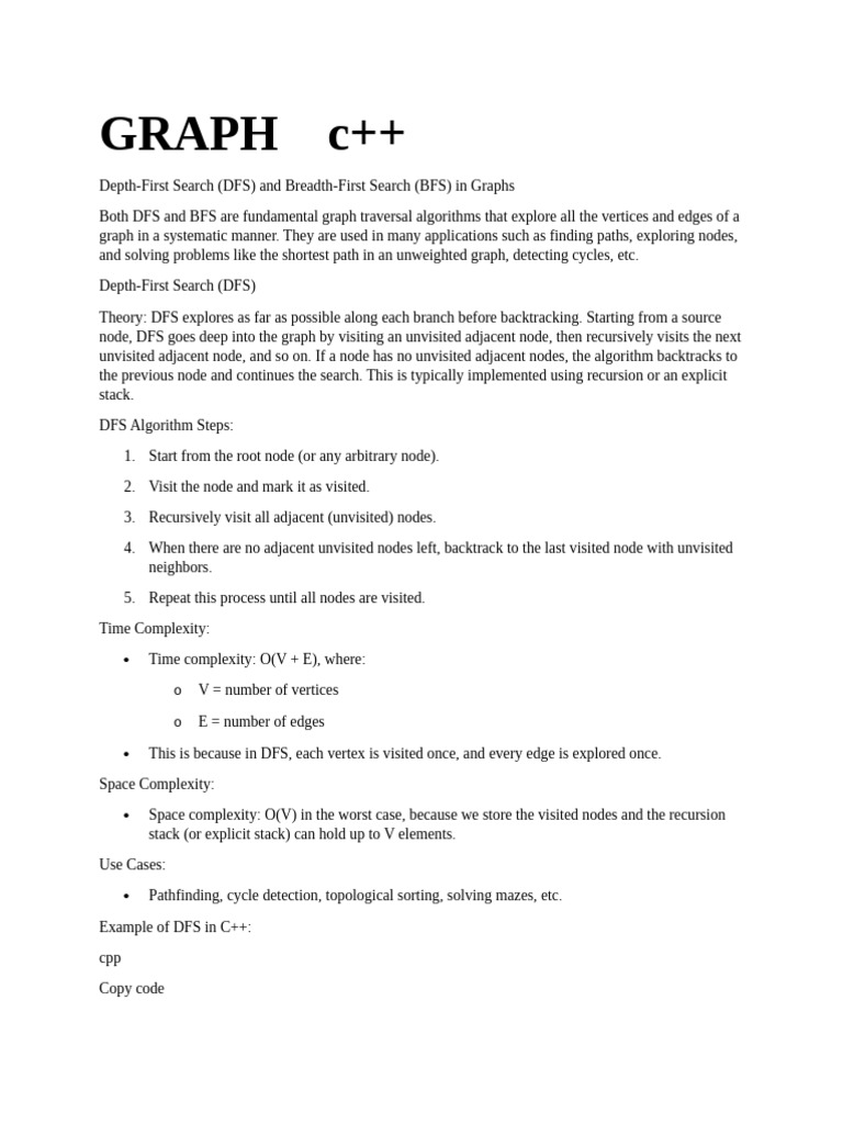 Theory: DFS explores as far as possible along each branch before backtracking. Starting from a source