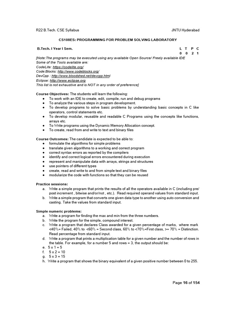 R22 B.Tech. CSE Syllabus JNTU Hyderabad
