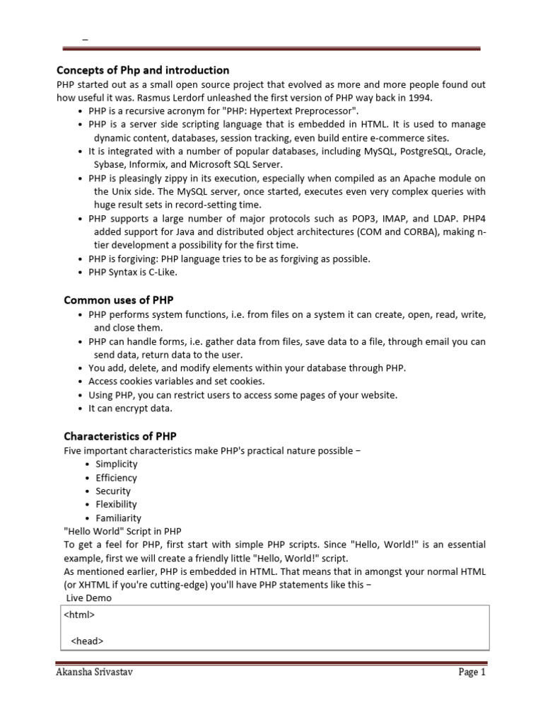 Concepts of Php and introduction