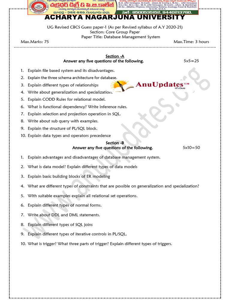 UG Revised CBCS Guess paper-1 (As per Revised syllabus of A.Y 2020-21)