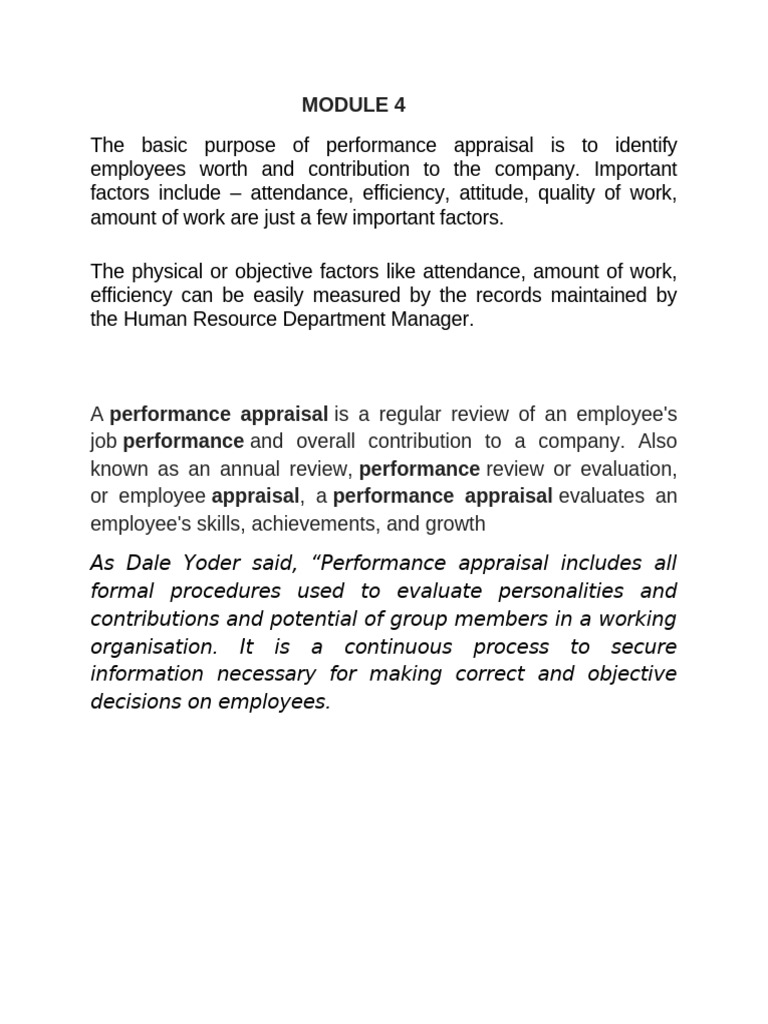 OBJECTIVES OF PERFORMANCE APPRAISAL