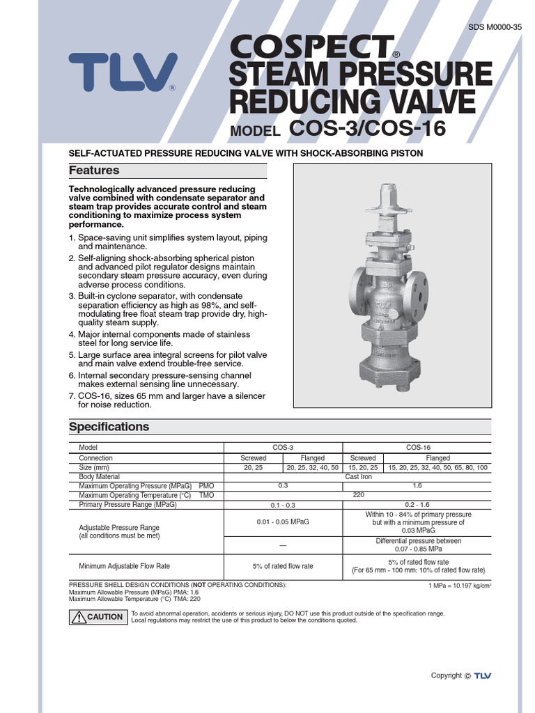 Copyright https://www.tlv.com SDS M0000-35 Rev. 7/2018