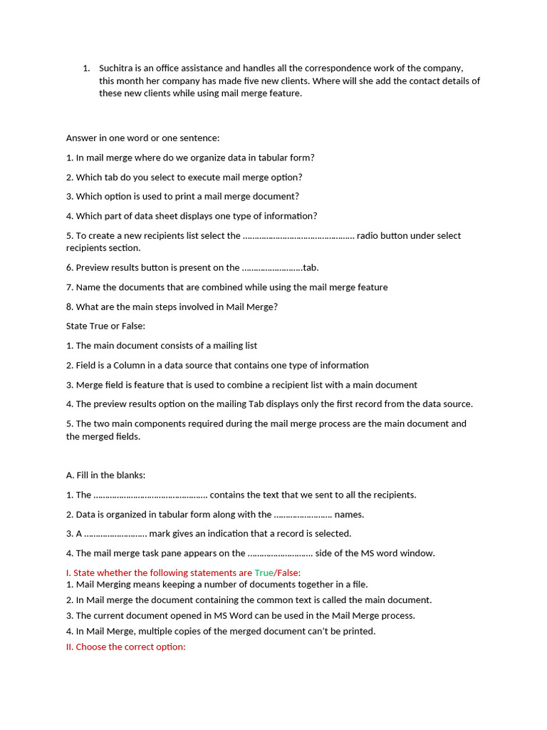 1. The Mail Merge is the process of combining a ……………….. letter with the Contents of a database.