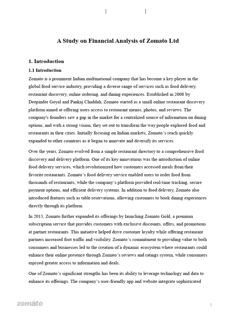 A Study on Financial Analysis of Zomato Ltd