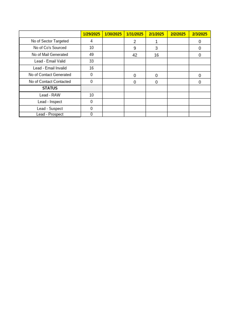 No of Contact Generated 0 0 0 0