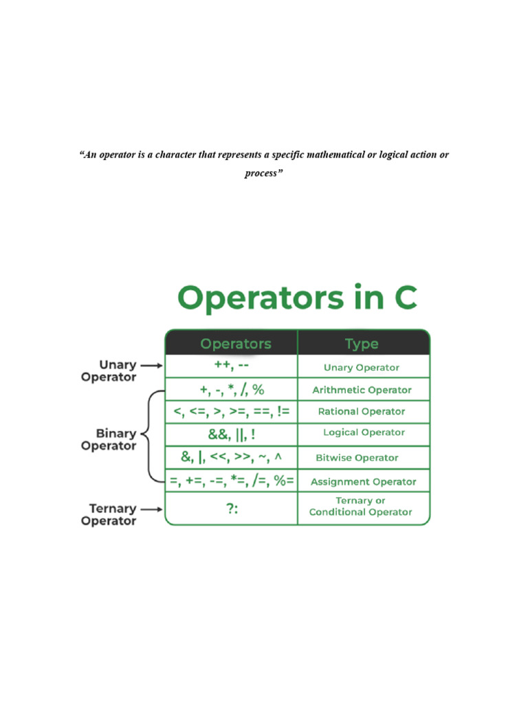 “An operator is a character that represents a specific mathematical or logical action or