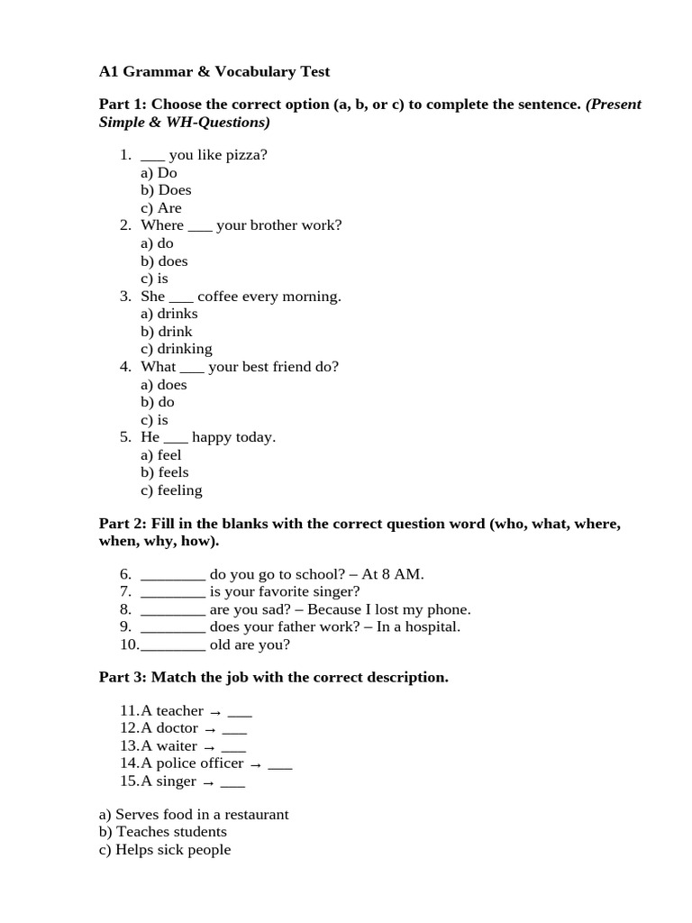 Part 1: Choose the correct option (a, b, or c) to complete the sentence. (Present