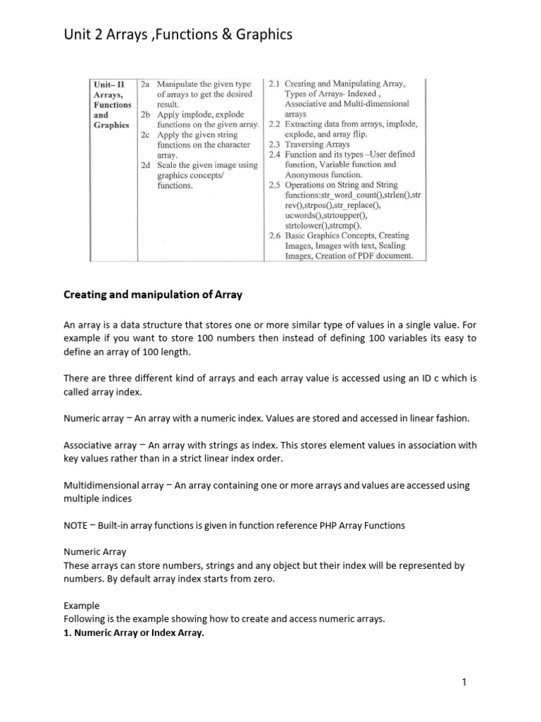 Unit 2 Arrays ,Functions & Graphics